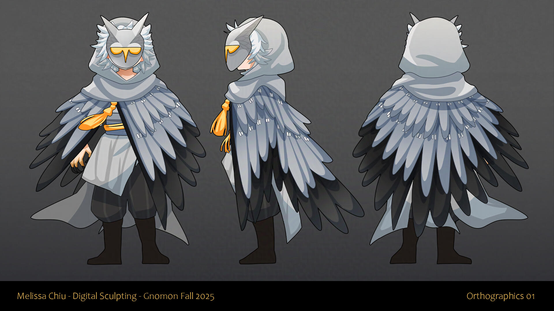 Created for the Digital Sculpting class during Gnomon's Fall 2025 term! I had a lot of fun designing and sculpting this character. He's based on the Great Horned Owl. This project was entirely completed in Zbrush, from the sculpting, texture painting, and rendering!